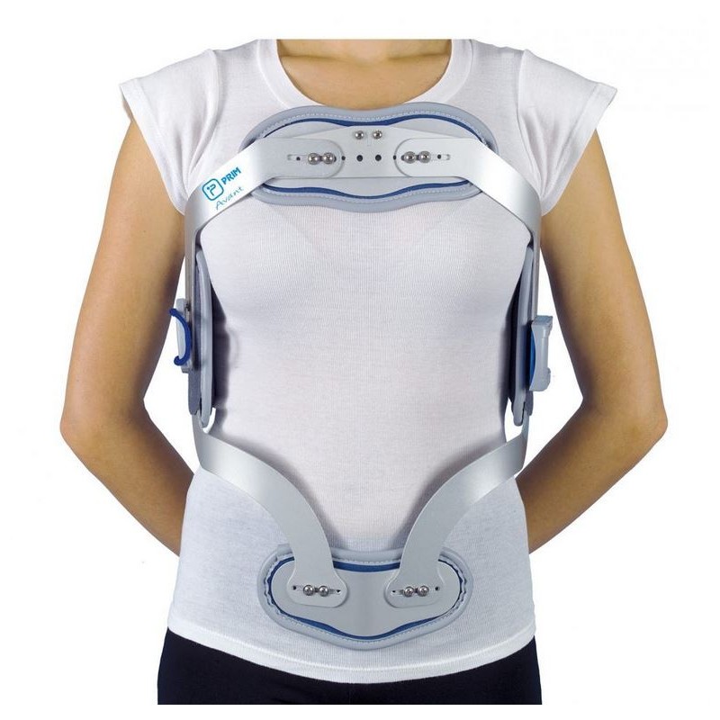 Prim Marco de Hiperextensión con Apoyo en Pubis regulable C34B es una ortesis de hiperextensión fabricada en duraluminio anodizado de alta calidad. Diseñado específicamente para mantener la columna en hiperextensión, este dispositivo limita los movimientos antero-posteriores y laterales, proporcionando estabilidad y soporte vertebral. Con un sistema de placas ajustables en altura y ancho, se adapta perfectamente a la anatomía del usuario para una mayor comodidad y efectividad. Incluye una placa esternal oscilante y una placa púbica fija regulable, ambos elementos acolchados para mejorar el confort.