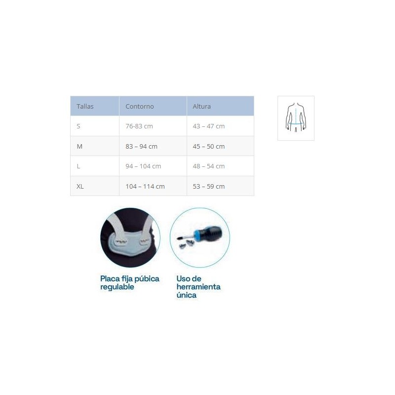 - Placa púbica fija regulable: Permite un soporte estable en el área del pubis.