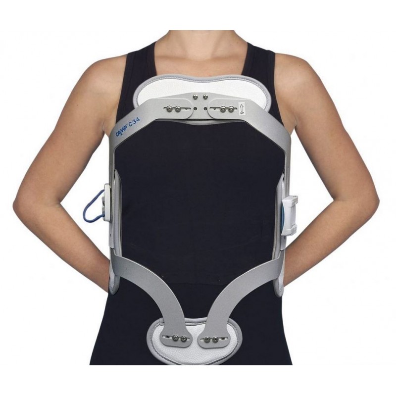 Prim Marco de Hiperextensión con Apoyo en Pubis regulable C34B es una ortesis de hiperextensión fabricada en duraluminio anodizado de alta calidad.