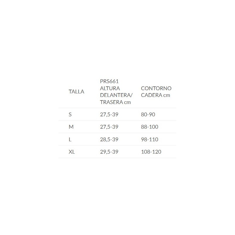 | TALLA | PRS661 ALTURA DELANTERA/TRASERA cm | CONTORNO CADERA cm |