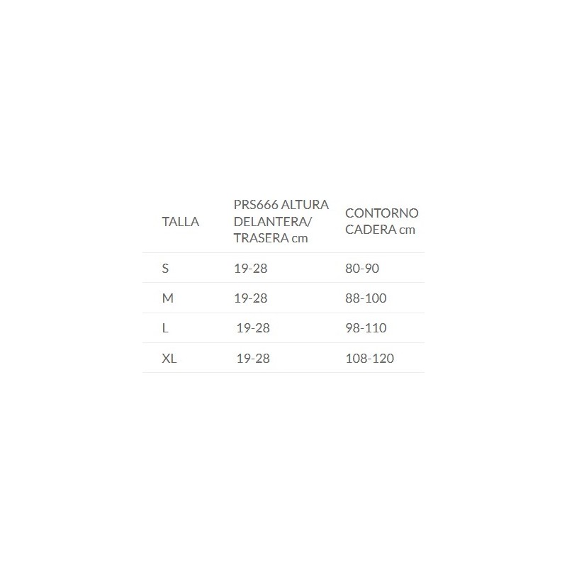 | TALLA | PRS666 ALTURA DELANTERA/TRASERA cm | CONTORNO CADERA cm |