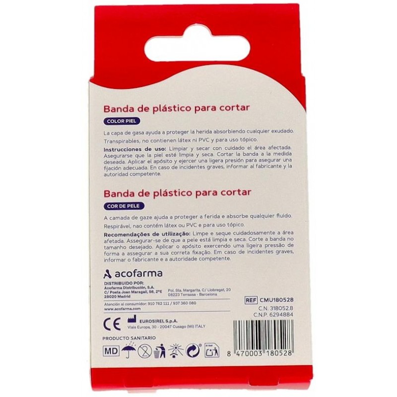 Acofar Banda de Plástico para Cortar es un apósito hipoalergénico y transpirable que protege eficazmente las heridas, cortes y rozaduras. Su formato recortable permite adaptarlo al tamaño deseado, ofreciendo una protección cómoda y segura. Sin látex ni PVC, es ideal para todo tipo de pieles y garantiza una cicatrización rápida y natural.