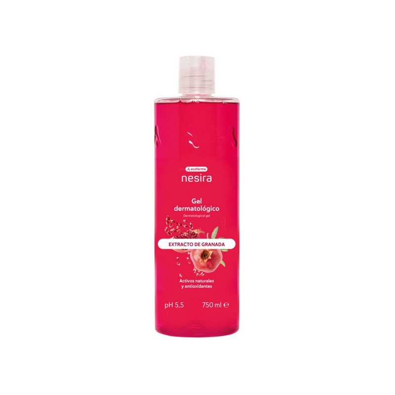 Acofarma Nesira Gel Extracto de Granada limpia e hidrata la piel con suavidad, aportando elasticidad y frescor. Su extracto de granada antioxidante revitaliza la piel y combate la sequedad. Ideal para uso diario y todo tipo de piel.