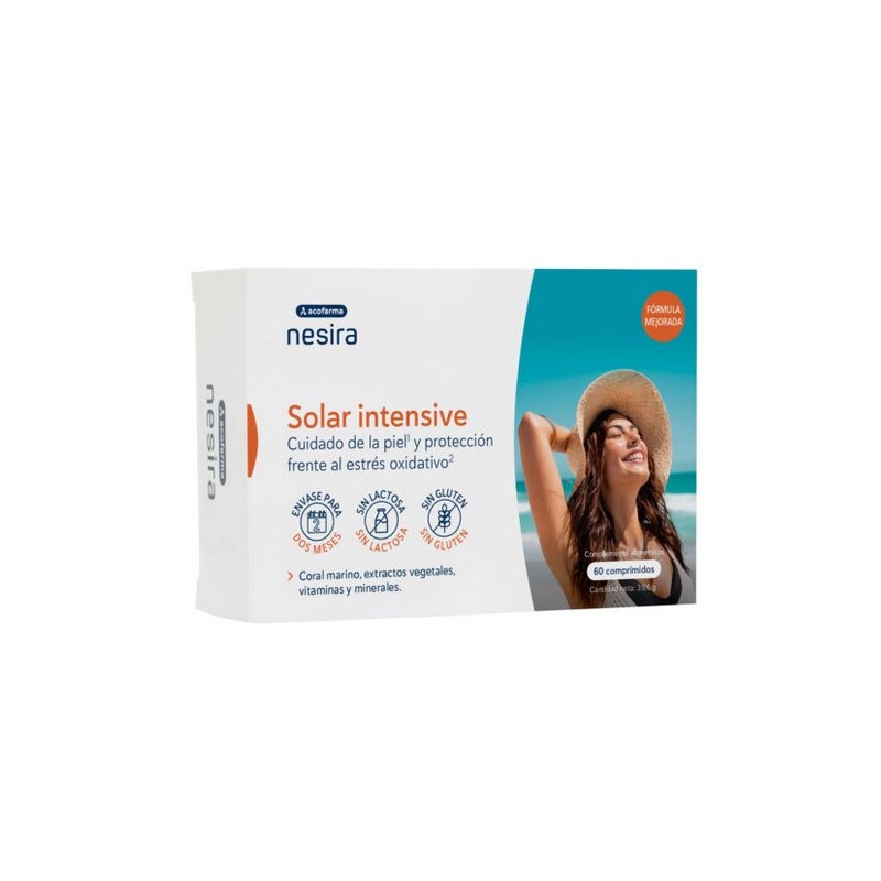 Acofar Nesira Solar Intensive es un complemento alimenticio diseñado para preparar, proteger y cuidar la piel frente a la exposición solar. Su fórmula avanzada combina coral marino, extractos vegetales, vitaminas y minerales que contribuyen a mantener la piel en condiciones normales, reforzar su resistencia y favorecer una óptima respuesta al sol. Gracias a su fórmula antioxidante y a la presencia de nutrientes esenciales como la vitamina A, biotina, vitamina C, vitamina E, selenio, cobre y vitamina D, este complemento se posiciona como un aliado indispensable para quienes desean disfrutar del sol sin descuidar la salud y belleza de la piel.