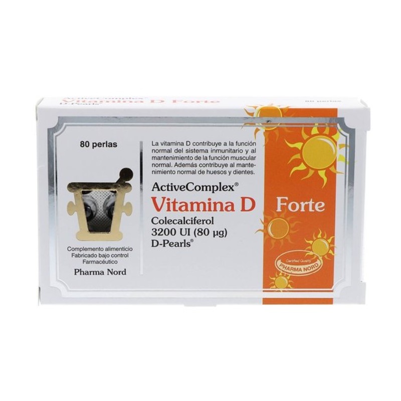 ActiveComplex Vitamina D Forte es un complemento alimenticio de vitamina D3 de alta potencia, formulado para apoyar de manera eficaz la salud general del organismo. Cada perla contiene 80 µg de vitamina D3 (colecalciferol), equivalentes a 3200 UI, disueltos en aceite de oliva prensado en frío, lo que garantiza una óptima absorción y una biodisponibilidad documentada.