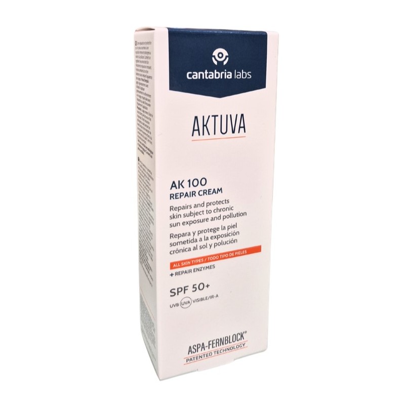 Gracias a su exclusiva combinación de Aspa Fernblock®, enzimas reparadoras del ADN y sulforafano, Aktuva AK 100 Repair Cream SPF 50+ actúa de forma integral sobre los efectos del foto-daño, ayudando a reparar, proteger y prevenir nuevas lesiones cutáneas derivadas de la exposición solar crónica.