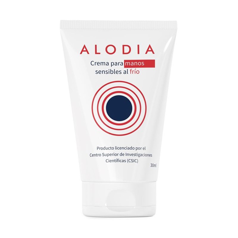 Alodia Manos contiene el compuesto patentado DHC-A27, desarrollado por el CSIC, que bloquea de forma específica los receptores sensoriales TRPM8, responsables de la percepción del frío y del tacto. Además, su fórmula está enriquecida con emolientes para nutrir y proteger la piel sensible.