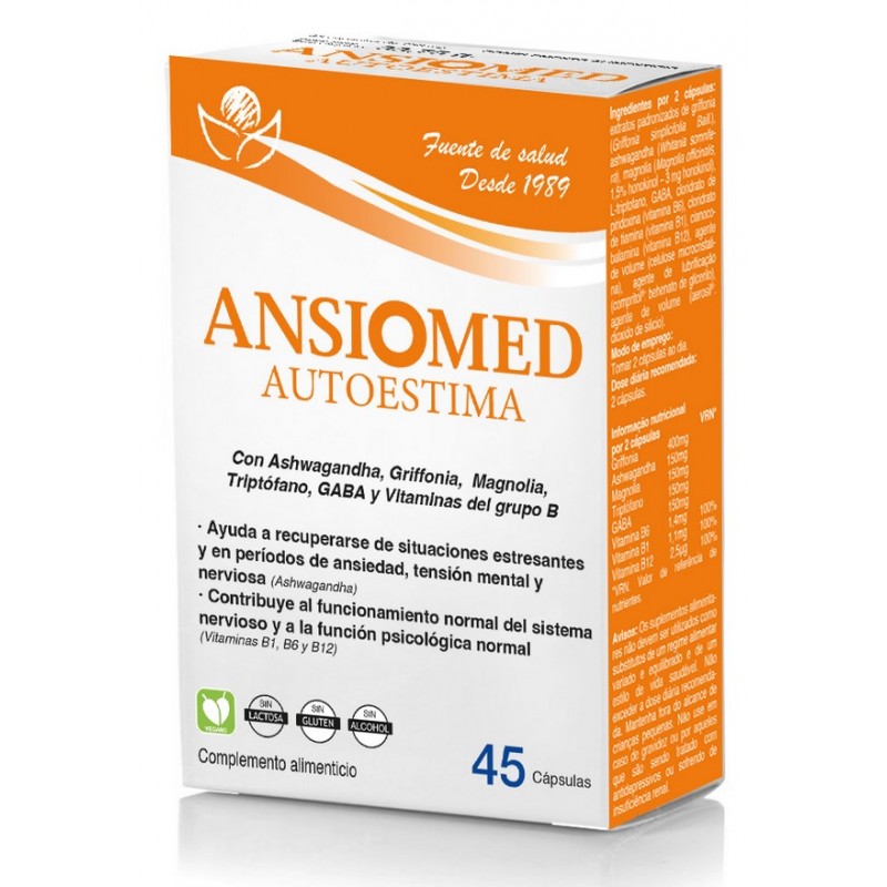 Ansiomed Autoestima es un complemento alimenticio en cápsulas formulado especialmente para ayudar a afrontar periodos de tensión mental y nerviosa, particularmente aquellos asociados a baja autoestima, miedos o temores.