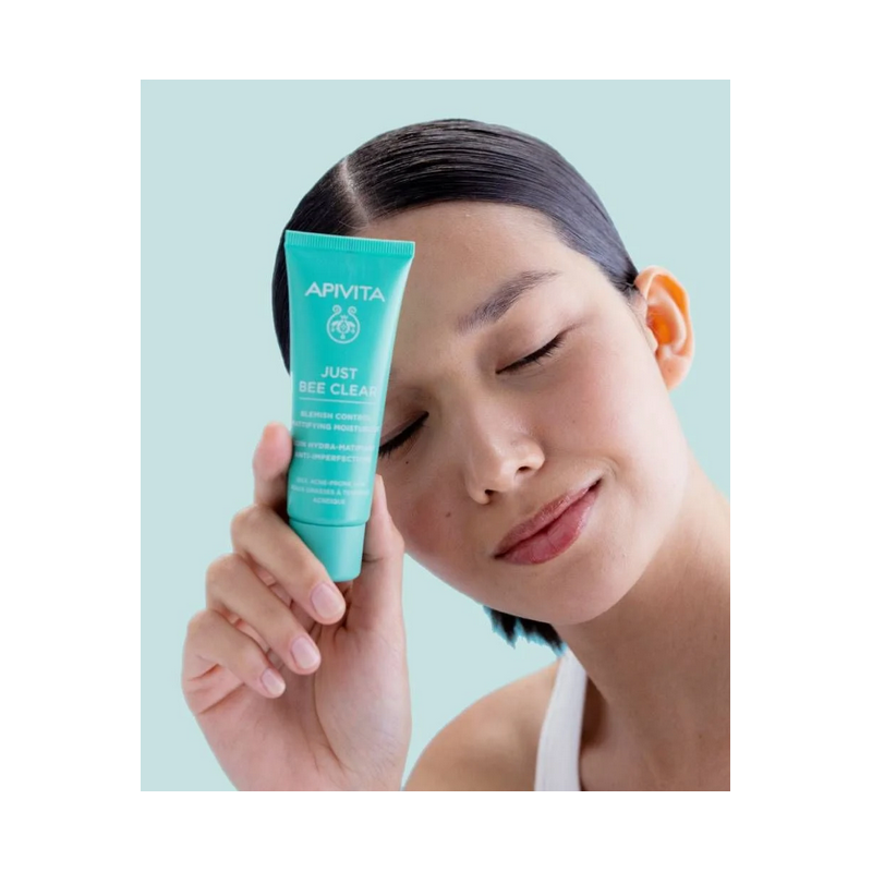 APIVITA JUST BEE CLEAR GEL-CREMA ANTI-IMPERFECCIONES MATIFICANTE HIDRATANTE es un gel-crema ultraligero diseñado específicamente para pieles grasas y con tendencia acneica.