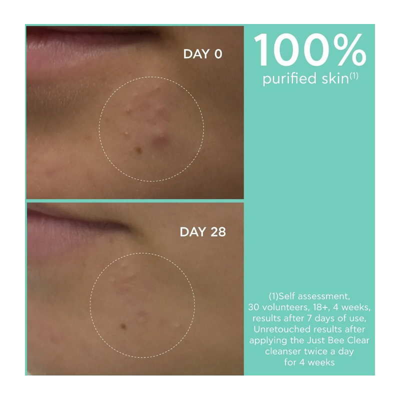 Aplicar dos veces al día sobre la piel húmeda (rostro, pecho, espalda), masajear hasta que haga espuma y aclarar bien. Para maximizar resultados, aplicar después JUST BEE CLEAR Loción Purificante Minimizadora de Poros y Crema Anti-impefecciones Matificante Hidratante. Una rutina completa de 3 pasos para conseguir una piel confortable, libre de imperfecciones.¿Qué beneficios tiene su uso?