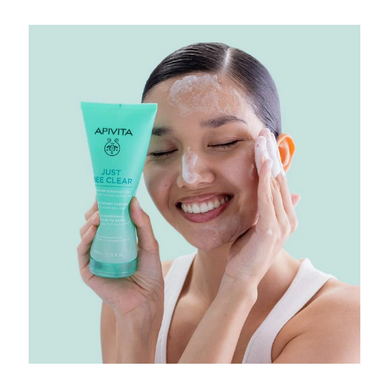 APIVITA JUST BEE CLEAR GEL LIMPIADOR PURIFICANTE es un gel limpiador espumoso diseñado específicamente para pieles grasas y con tendencia acneica.