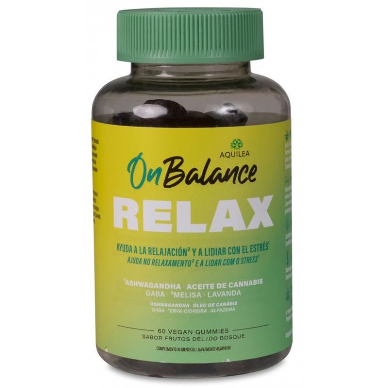 Aquilea OnBalance RELAX es una solución natural, práctica y gustosa para quienes buscan apoyo en la gestión del estrés y una ayuda para la relajación diaria. La sinergia de Ashwagandha Sensoril®, GABA, melisa y lavanda, junto al aceite de semilla de cáñamo, ofrece un enfoque integral que combina eficacia tradicional y tecnología actual en un formato cómodo: gummies. Ideal para adultos que prefieren alternativas naturales con ingredientes de alta tolerancia.