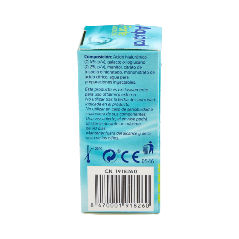 Consulte a un profesional de la salud ocular antes de utilizar Aquoral Forte si experimenta alguna reacción adversa o si tiene una afección ocular preexistente. Mantenga el envase cerrado y almacénelo en un lugar fresco y seco. No utilizar si el envase está dañado. Mantener fuera del alcance de los niños. Después de su administración, en raras ocasiones puede darse leve visión borrosa temporal, debido a la viscosidad de la solución. Por eso, se recomienda esperar unos segundos antes de realizar cualquier actividad que requiera agudeza visual. Esperar 10-15 minutos antes de administrar cualquier otra medicación oftálmica. Una vez abierto, el envase podrá utilizarse durante un máximo de 90 días.
