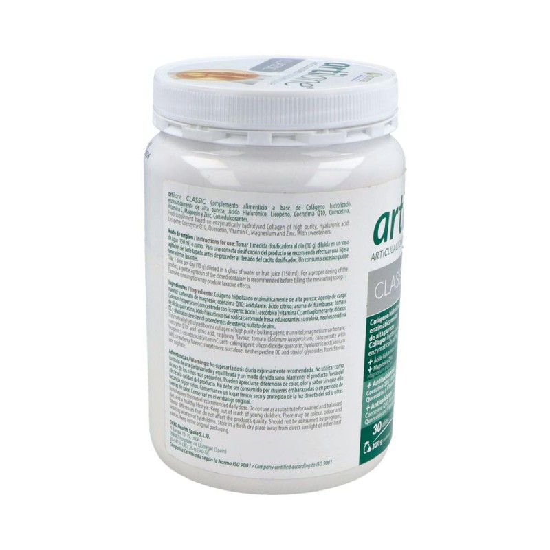 Artilane Classic Polvo Oral es un complemento alimenticio avanzado formulado con una combinación exclusiva de colágeno hidrolizado enzimáticamente de alta pureza, ácido hialurónico, magnesio, zinc y antioxidantes como Coenzima Q10, licopeno, quercetina y vitamina C. Su fórmula ha sido diseñada para prevenir el desgaste articular, mejorar la flexibilidad y favorecer la movilidad de las articulaciones, aportando un soporte integral a la salud articular.
