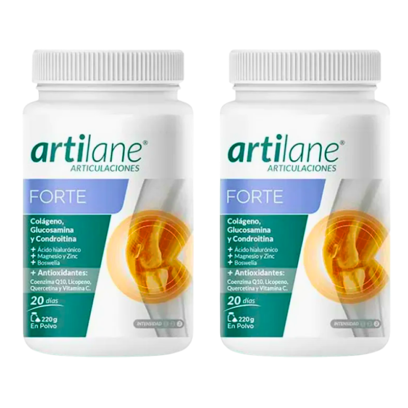 Artilane Forte Polvo Duplo es un complemento alimenticio para articulaciones con colágeno hidrolizado, glucosamina, condroitina y ácido hialurónico, ideal para mejorar la movilidad articular, reducir la rigidez y favorecer el bienestar musculoesquelético. Su fórmula avanzada con antioxidantes ayuda a proteger frente al desgaste articular y el estrés oxidativo.