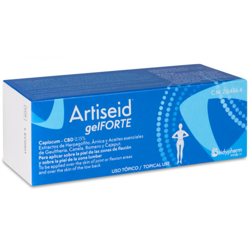 Artiseid Gel Forte con CBD es un gel de uso tópico con efecto calmante y termoactivo, especialmente formulado para el cuidado de las zonas articulares, musculares y lumbares. Gracias a su innovadora combinación de CBD (Cannabidiol) al 0,15%, Capsicum 0,15%, Harpagofito al 2%, Árnica y una exclusiva mezcla de aceites esenciales de Gaulteria, Canela, Romero y Cajeput, este gel proporciona una agradable sensación de alivio y bienestar tras su aplicación.
