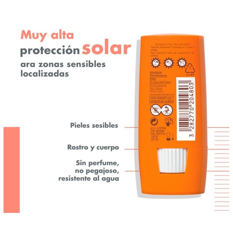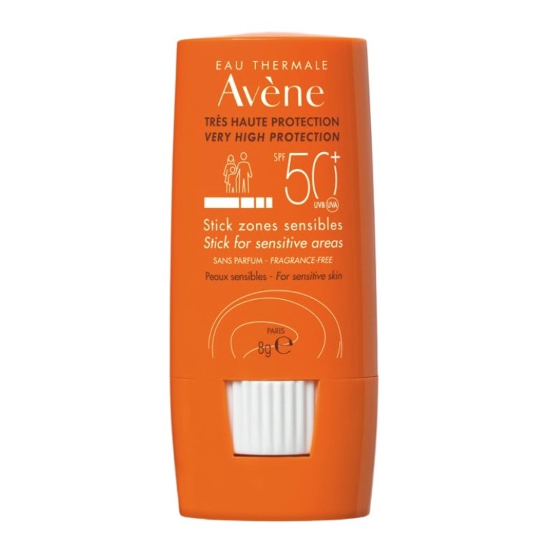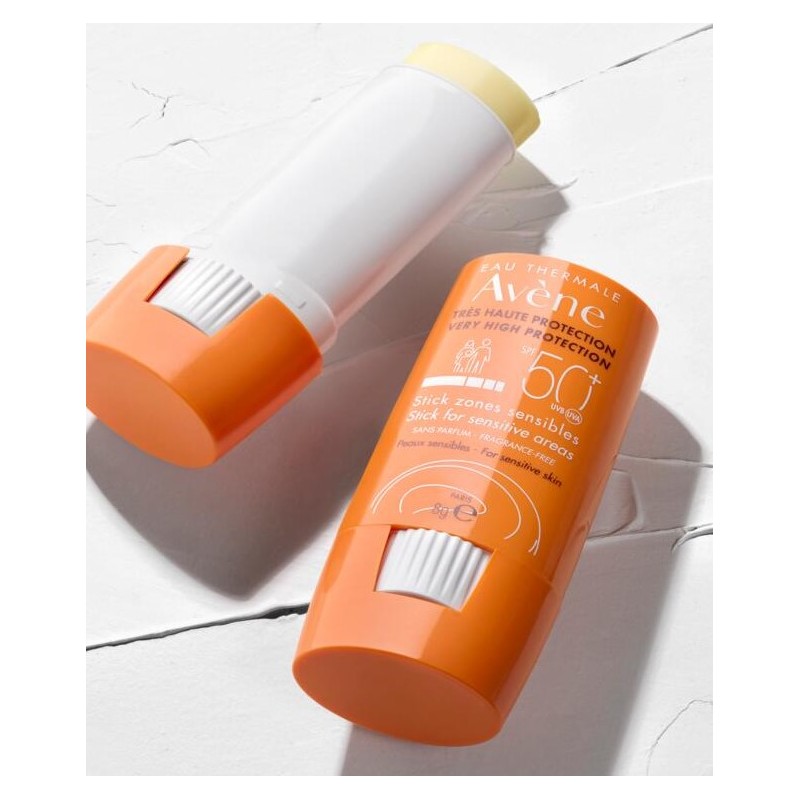 Avene Stick Zonas Sensibles SPF 50+ es un fotoprotector de muy alta protección indicado para zonas sensibles localizadas del rostro y el cuerpo. Su fórmula sin perfume, resistente al agua y al sudor, es ideal para toda la familia y especialmente útil para deportistas.