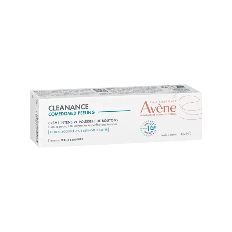 Avène Cleanance Comedomed Peeling es una crema intensiva diseñada específicamente para combatir brotes de acné y tratar imperfecciones. Su fórmula innovadora combina ingredientes de alta eficacia como el ácido glicólico, que exfolia la piel y promueve la renovación celular, y el Retinoid Booster, una combinación de retinal (la forma más eficaz de vitamina A) y Comedoclastin, que ayuda a reducir los granos y las marcas residuales. Este producto está pensado para personas con piel propensa al acné que buscan una solución eficaz y segura para reducir las imperfecciones y mejorar la textura de su piel.