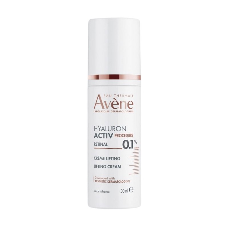 HYALURON ACTIV PROCEDURE Crema Lifting es una crema antiedad innovadora desarrollada por el Laboratorio Dermatológico Avène en colaboración con dermatólogos estéticos. Su fórmula combina ingredientes puros y concentrados reconocidos en medicina estética, entre los que destaca el Retinal al 0,1%, un activo 3 veces más potente que el retinol, capaz de actuar en profundidad para mejorar la firmeza, reducir arrugas y realzar los contornos faciales. Esta crema se presenta como una solución completa para quienes desean un efecto lifting visible y resultados clínicamente probados.