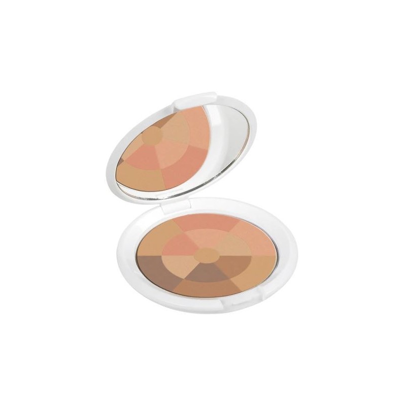 Este polvo compacto, con tonos rosáceos, unifica el tono de la piel y fija el maquillaje. Es ideal para sublimar la tez aportando un efecto buena cara natural o esculpir el rostro desdibujando sus contornos.