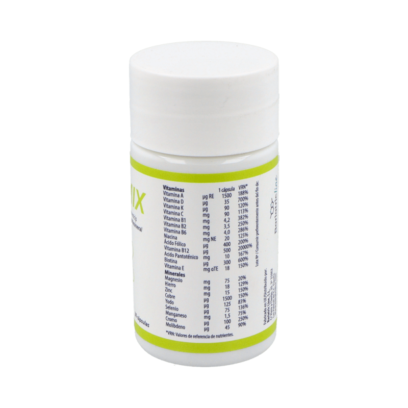BariMIX es un complemento alimenticio diseñado especialmente para cubrir las necesidades de vitaminas y minerales tras una cirugía bariátrica. Su fórmula incluye 13 vitaminas esenciales y 9 minerales clave que apoyan el equilibrio nutricional y el bienestar general de quienes han pasado por este tipo de intervención. Gracias a su fórmula avanzada, Barimix contribuye a mantener una adecuada salud metabólica y a prevenir deficiencias comunes en estos casos.