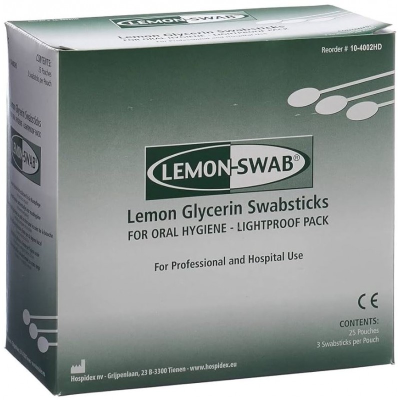 Presentados en bolsas de tres unidades y envasados individualmente, LEMON-SWAB Bastoncillos Bucales Glicerina-Limón están libres de látex y han sido desarrollados para mantener una adecuada higiene bucal de forma cómoda y segura. Su diseño ergonómico y su fórmula suave permiten un uso frecuente sin provocar irritaciones.