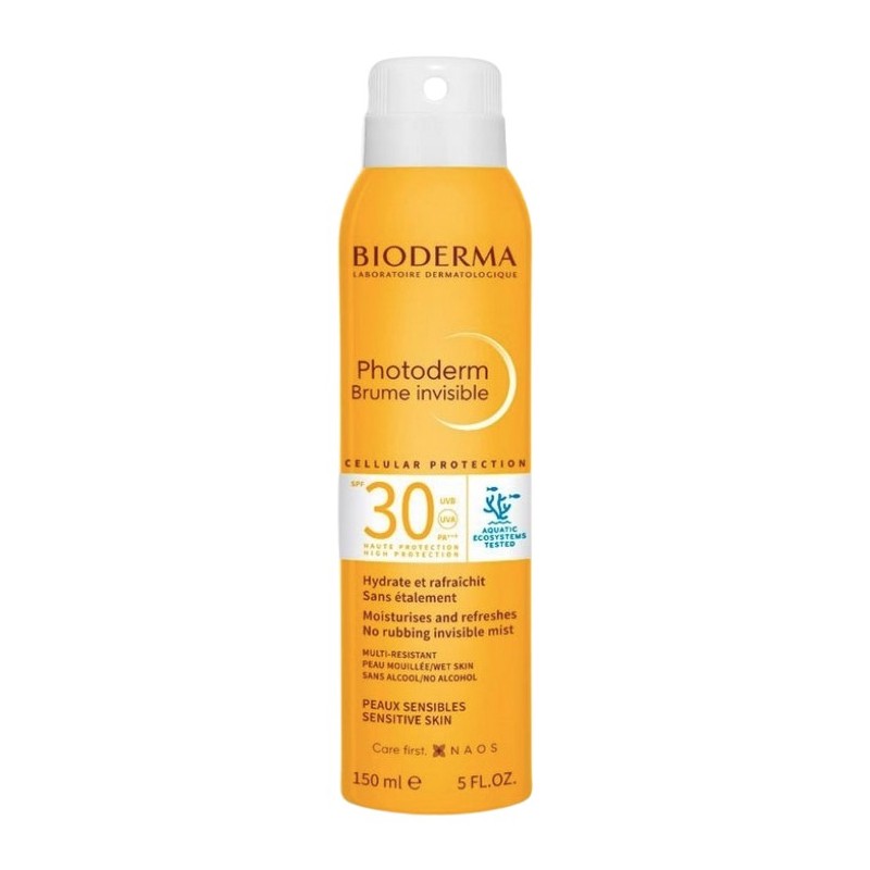 Bioderma Photoderm Bruma Invisible SPF30 es una bruma solar hidratante y refrescante que proporciona protección UVA/UVB muy alta para rostro y cuerpo. Ideal para piel sensible y todo tipo de piel, su fórmula de nueva generación protege las células del estrés oxidativo, hidrata durante 3 horas y deja un acabado invisible sin grasa ni sensación pegajosa.