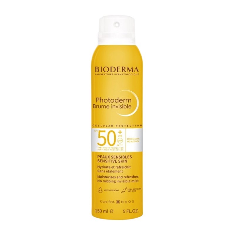Bioderma Photoderm Bruma Invisible SPF50+ es una bruma solar invisible diseñada para todo tipo de piel, incluyendo pieles sensibles. Ofrece una protección muy alta frente a los rayos UVA y UVB, combinada con propiedades hidratantes y refrescantes. Su textura ligera permite aplicarla sin frotar, dejando un acabado invisible y confortable en rostro y cuerpo.