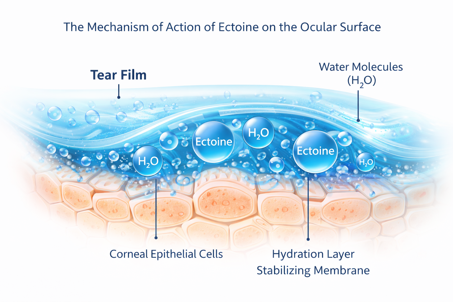La ectoína es una molécula natural con efecto osmoprotector y estabilizador de membranas celulares, utilizada cada vez más en el manejo de patologías relacionadas con la superficie ocular. Su aplicación en colirios y lágrimas artificiales está creciendo de forma notable en farmacia por su excelente perfil de tolerancia y su mecanismo de acción físico.