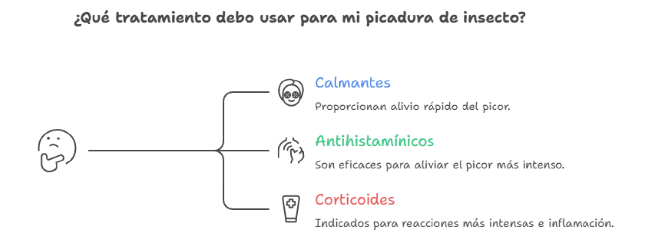 El tratamiento de las picaduras de insectos debe adaptarse a cada caso. Mientras que los calmantes ofrecen un alivio rápido, los antihistamínicos son la opción más eficaz para el picor, y los corticoides resultan clave en reacciones más intensas.