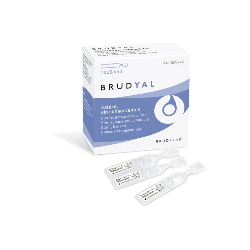 BRUDYAL Solución Humectante es una solución ocular estéril sin conservantes a base de ácido hialurónico al 0,1% de alto peso molecular. Diseñada para proporcionar un alivio eficaz a los síntomas de la sequedad ocular, la irritación y el cansancio visual, forma una película protectora que hidrata y protege la superficie ocular. Su fórmula avanzada ofrece una hidratación intensa y prolongada, ideal para usuarios de lentes de contacto.