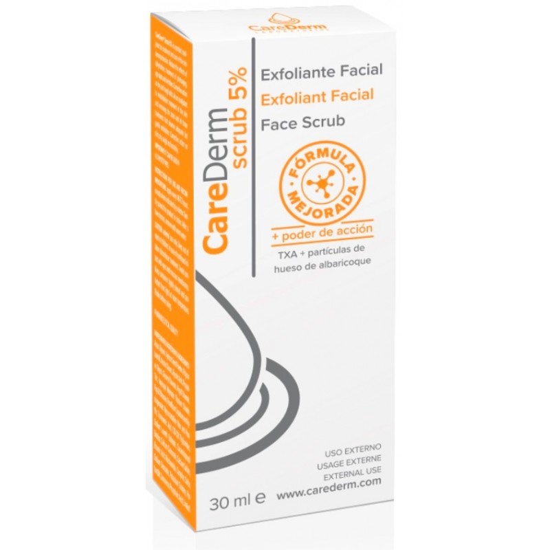 CareDerm Scrub 5% es un exfoliante facial de última generación formulado específicamente para ofrecer una queratolisis controlada. Gracias a la combinación única de sus ingredientes activos, este producto ha sido diseñado para eliminar eficazmente las células muertas de la piel, mejorar su textura y regular la actividad de las glándulas sebáceas. Su avanzada fórmula permite preparar la piel para otros tratamientos dermatológicos, favoreciendo una mejor absorción de principios activos posteriores.
