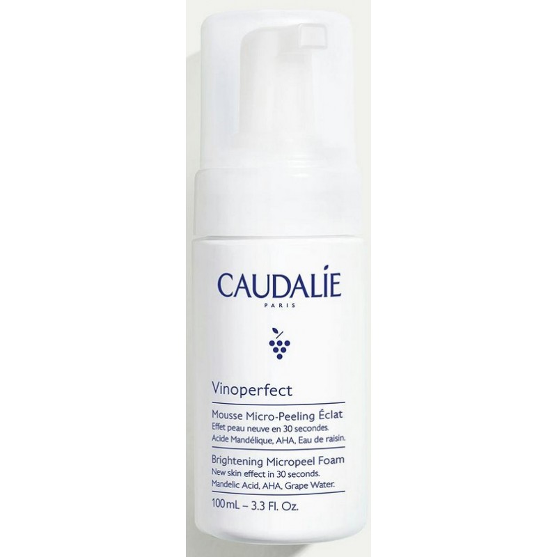 Caudalie Vinoperfect Espuma Micropeeling Luminosidad con Ácido Mandélico es un innovador tratamiento exfoliante diario en textura espuma que limpia la piel en profundidad mientras elimina suavemente las células muertas responsables del tono apagado y las irregularidades cutáneas. Gracias a su acción queratolítica delicada, proporciona un auténtico efecto piel nueva en solo 30 segundos.