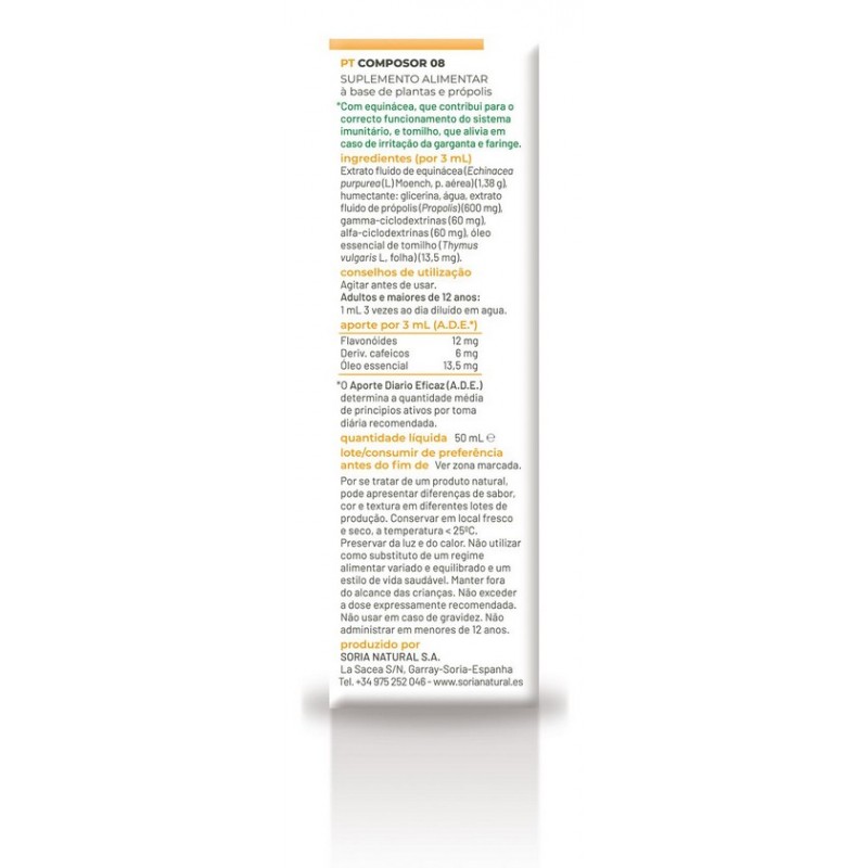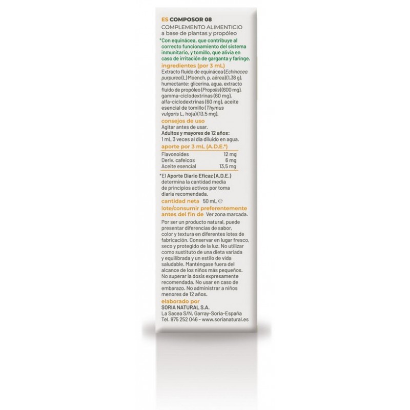 Si buscas un refuerzo natural para el sistema inmunológico que además ayude a cuidar la garganta y las vías respiratorias, Soria Natural Composor 08 es una excelente opción para incorporar a tu rutina diaria.