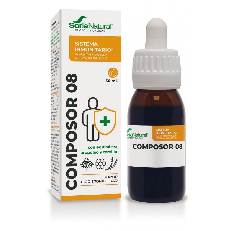 Soria Natural Composor 08 es una excelente opción para quienes buscan un refuerzo natural del sistema inmunitario. Su combinación de equinácea, propóleo y tomillo, junto con su formulación avanzada con ciclodextrinas, ofrece una solución eficaz y cómoda para apoyar las defensas del organismo.