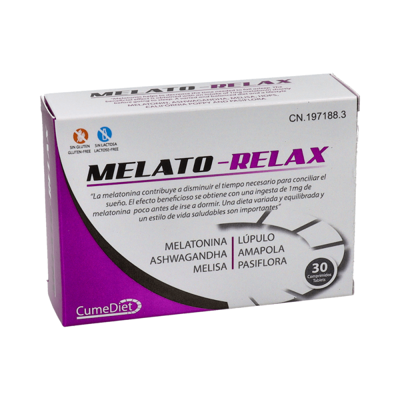 Cumediet MELATO-RELAX es un complemento alimenticio formulado con una combinación de Melatonina, Ashwagandha, Melisa, Lúpulo, Amapola y Pasiflora, ingredientes reconocidos por sus propiedades relajantes y su contribución a la mejora de la calidad del sueño.