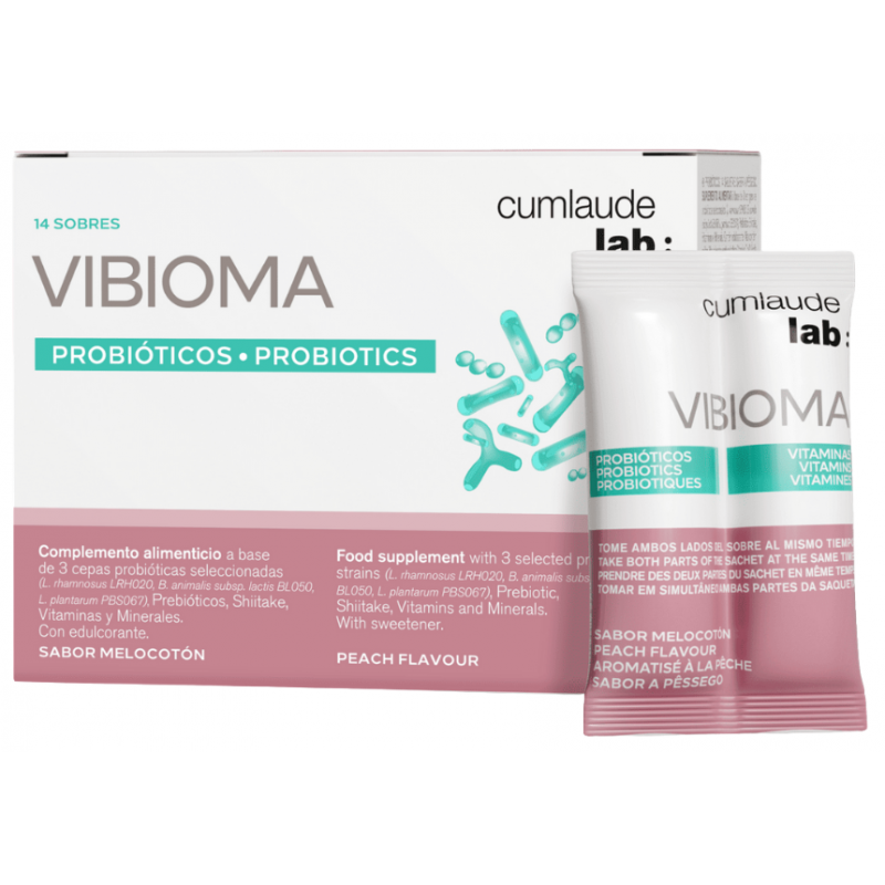 Cumlaude Lab Vibioma es un complemento alimenticio desarrollado específicamente para promover el bienestar íntimo femenino mediante una fórmula avanzada que combina probióticos, prebióticos, extractos naturales, vitaminas y minerales. Este innovador producto incorpora una triple asociación probiótica cuidadosamente seleccionada para contribuir al equilibrio de la microbiota vaginal y reforzar las defensas naturales del organismo.