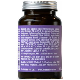HIFAS da TERRA Papilozumib es un complemento alimenticio natural con Reishi, Cordyceps, Melena de león, probióticos Lactobacillus, vitaminas A, C, D3 y E y zinc y selenio. Contribuye al funcionamiento normal del...