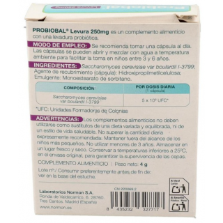Probiobal Levura es un complemento alimenticio con Saccharomyces boulardii I-3799 250 mg (5000 millones de UFC) diseñado para favorecer el equilibrio de la flora intestinal. Apto a partir de 3 años, sin lactosa y sin...