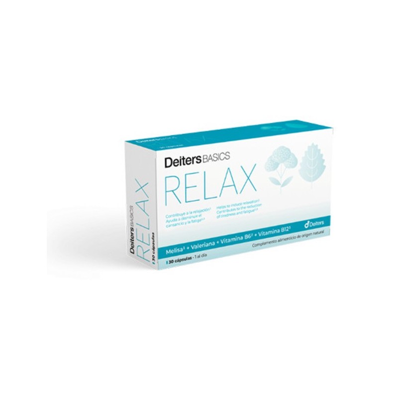 Deiters Basics Relax es un complemento a base de melisa, valeriana, vitamina B6 y vitamina B12 que contribuye a la relajación y ayuda a disminuir el cansancio y la fatiga.