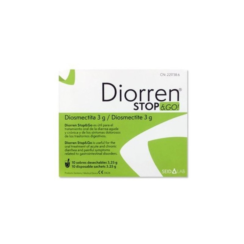 Diorren Stop & Go 10 sobres es un complemento para la diarrea aguda y crónica formulado con diosmectita, una arcilla natural con alto poder absorbente. Ayuda a controlar la diarrea rápidamente, protege la mucosa intestinal y reduce el dolor y las molestias digestivas. Apto para adultos y niños a partir de 2 años. Recupera el bienestar digestivo de forma eficaz y práctica.