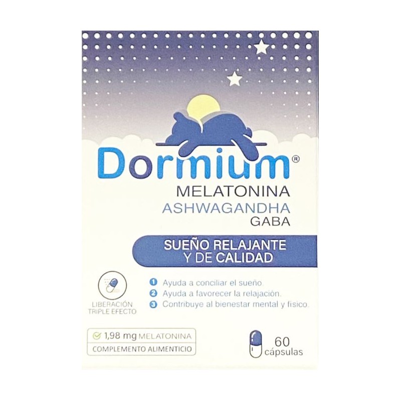 Dormium es un complemento alimenticio en cápsulas formulado específicamente para promover un sueño de calidad, profundo y reparador. Su exclusiva fórmula combina ingredientes reconocidos por sus efectos positivos en el descanso, como la melatonina, la Ashwagandha y el GABA, aportando un triple efecto de liberación que actúa en distintas fases del sueño. Con una dosis precisa de 1,98 mg de melatonina por cápsula, este suplemento ha sido diseñado para ayudarte a conciliar el sueño más rápidamente, reducir el estrés diario y favorecer un descanso óptimo, tanto físico como mental.