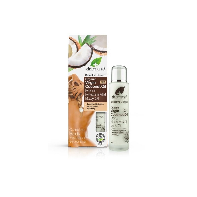 Aceite corporal de Coco Virgen orgánico, rico en triglicéridos de cadena media (TMC). Enriquecido con extracto de la flor de tiaré, aceite de papaya, manteca de mango, manteca de cacao, extracto de naranja y aceite de bergamota. Este aceite multi-acción de hidratación intensiva se utiliza para la piel, el cabello y las uñas, aportando luminosidad y elasticidad.