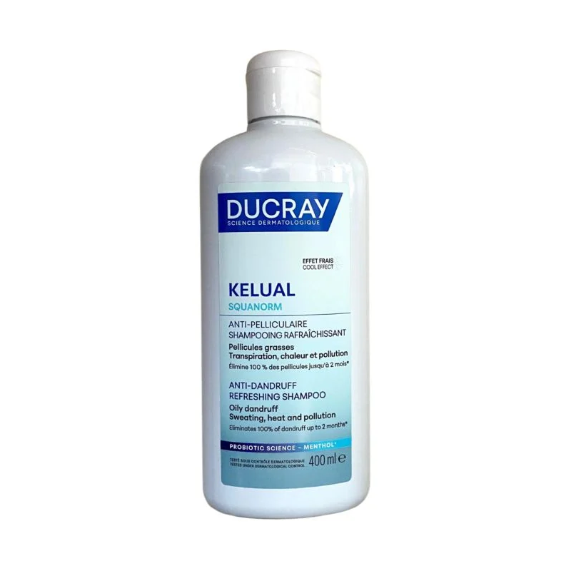 Ducray Kelual Squanorm Anticaspa Champú Refrescante es un champú anticaspa para caspa grasa que elimina escamas, reduce el picor y purifica el cuero cabelludo. Con efecto refrescante inmediato, deja el cabello limpio, ligero y libre de caspa desde las primeras aplicaciones.