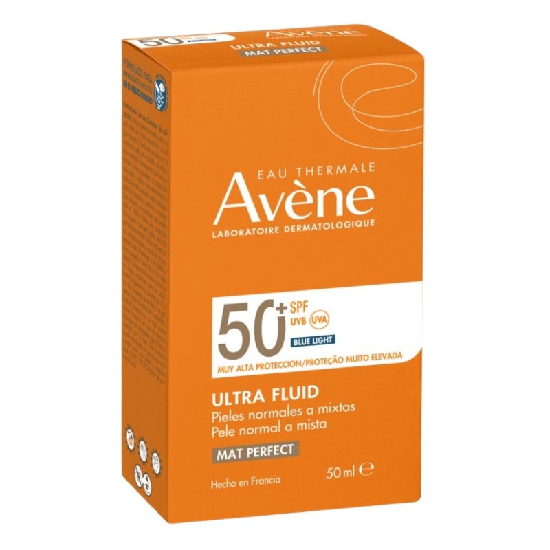 Avene Ultra Fluido Mat Perfect SPF 50+ es un protector solar facial con color de ultraamplio espectro, que protege contra los rayos UVB, UVA, la Luz Azul (HEV), la contaminación y el estrés oxidativo. Su textura ultraligera y ultrafluida se absorbe al instante, dejando un acabado mate, uniforme y radiante.