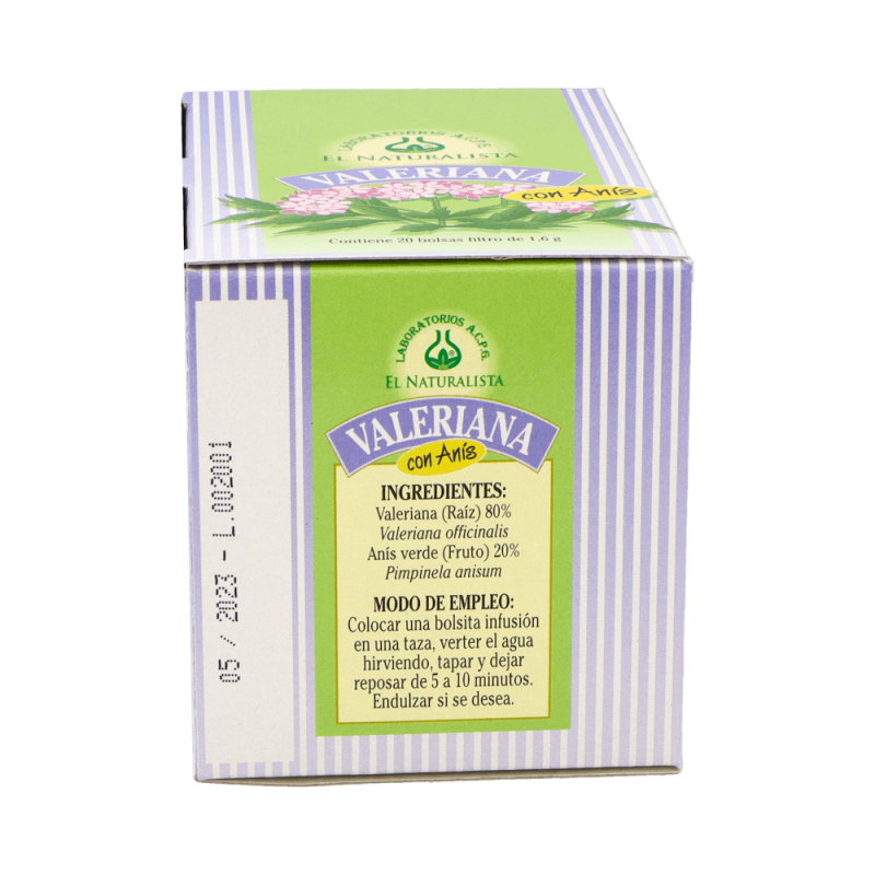 El Naturalista Valeriana con Anís es una infusión natural que combina dos plantas con propiedades sedantes y relajantes: Valeriana officinalis y Pimpinella anisum (anís verde). La valeriana es conocida desde hace siglos por sus efectos calmantes sobre el sistema nervioso, ayudando a reducir la ansiedad y promoviendo un sueño reparador. El anís, por su parte, añade un toque suave y digestivo a esta infusión, mejorando su sabor y sus propiedades relajantes.