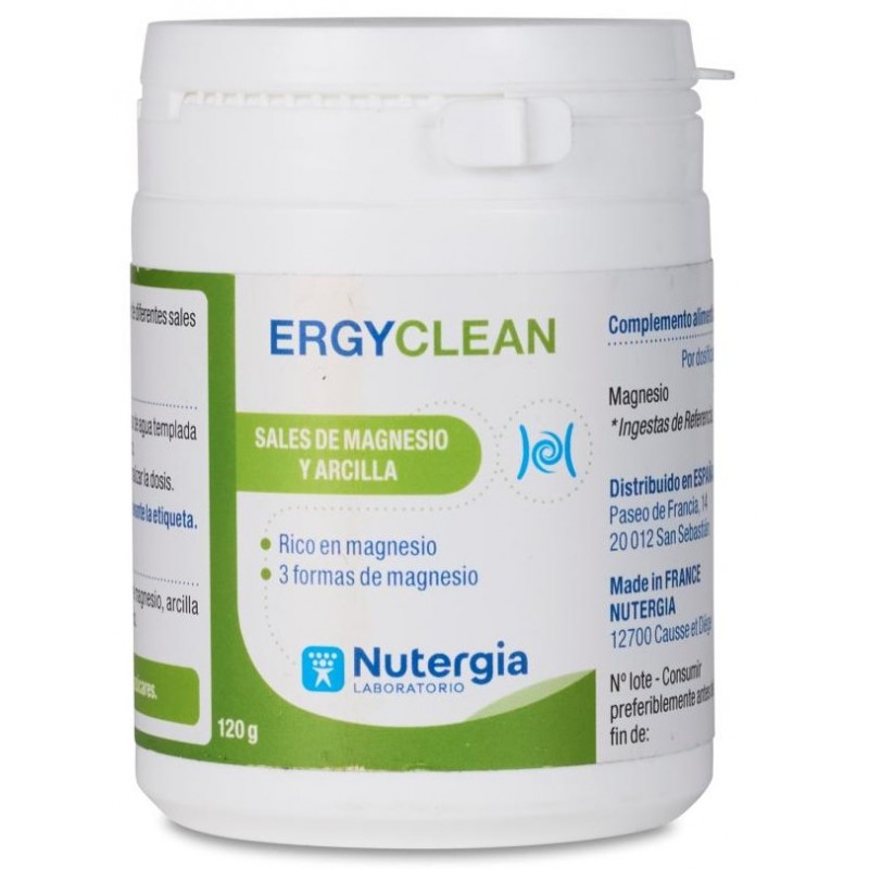 Ergyclean es un complemento alimenticio en formato polvo formulado con una combinación de sales de magnesio y arcilla, diseñado para apoyar la detoxificación natural del organismo y favorecer una correcta limpieza intestinal.