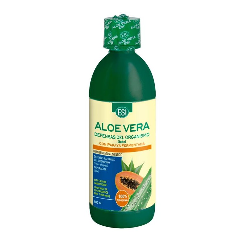 ESI Aloe Vera Zumo con Papaya Fermentada es un complemento alimenticio natural que combina las propiedades del gel interno de las hojas de Aloe Vera con los beneficios de la papaya fermentada y el saúco.