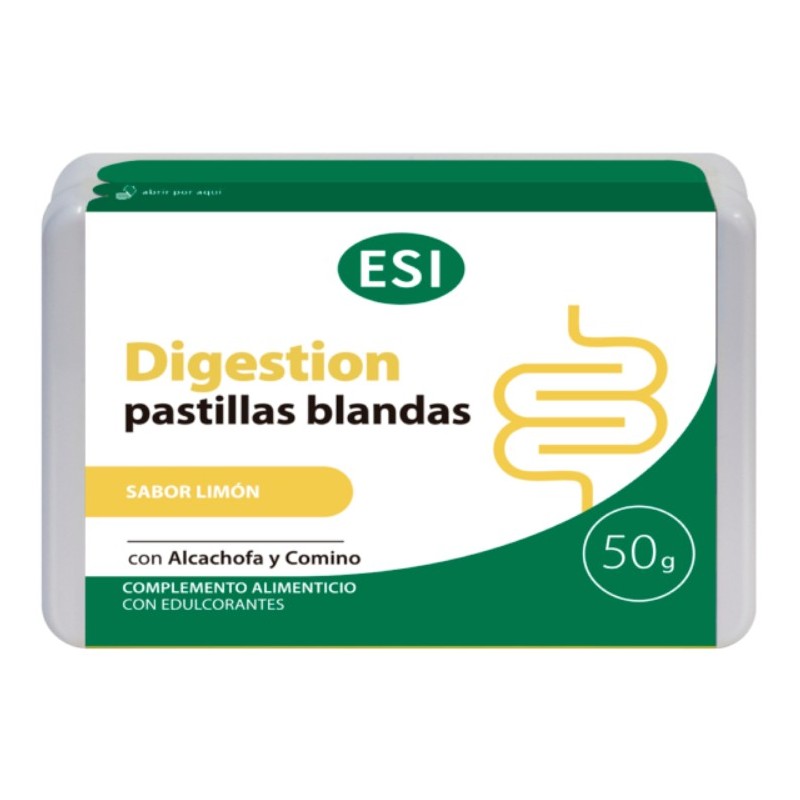ESI Digestión son pastillas blandas con función digestiva formuladas con alcachofa, comino y aceites esenciales que ayudan a mejorar la digestión, reducir la hinchazón y aliviar los gases. Ideal para disfrutar de un bienestar digestivo rápido y natural después de las comidas.