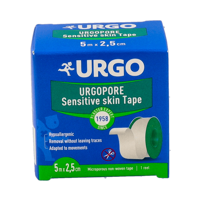 URGOPORE Esparadrapo Piel Sensible está indicado para la fijación de apósitos, gasas y compresas sobre heridas, cortes, rozaduras o zonas que requieran protección. Gracias a su formulación y textura suave, es ideal para pieles sensibles, frágiles o con tendencia a la irritación, como las de niños, personas mayores o pacientes con piel reactiva. También resulta útil en contextos hospitalarios o en el botiquín doméstico, donde la tolerancia cutánea y la eficacia son esenciales.